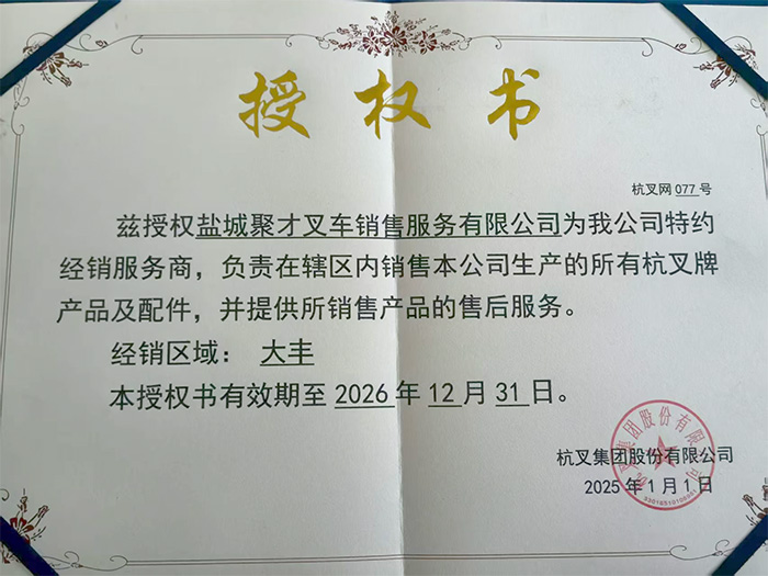 首页 > 公司资质 > 杭叉集团授权经销服务商证书